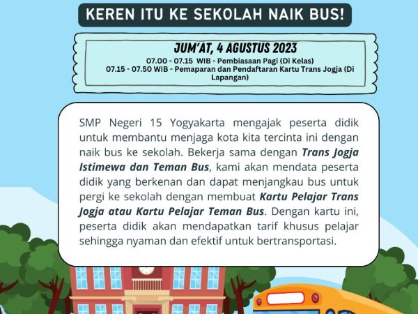 • Pesantren Ramadan & Doa Bersama Kelas VII SMP Negeri 15 Yogyakarta akan dilaksanakan pada Senin, 2 Maret 2026, mulai pukul 14.00 WIB.