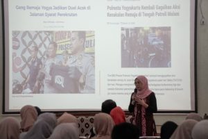 Kegiatan parenting ini dibersamai oleh MC dari komite kelas VIII dan dibuka oleh Waka Kurikulum, Ibu Rimawati, S.Pd. yang sekaligus mewakili Kepala SMP Negeri 15 Yogyakarta. Kegiatan ini menghadirkan narasumber ahli di bidangnya yaitu Intan Kusuma Wardani, M.Psi., seorang psikolog, dan Denie Ruth Unarapal, S.E. dari Badan Narkotika Nasional (BNN) Provinsi Daerah Istimewa Yogyakarta. Kedua narasumber ini mengulas permasalahan remaja dari dua sisi yang berbeda.