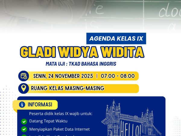 Informasi TPM TKA-TKAD tingkat Kota Yogyakarta. Mata Pelajaran Bahasa Inggris Hari Jumat, 6 Maret 2026 Semangat untuk murid kelas IX🔥