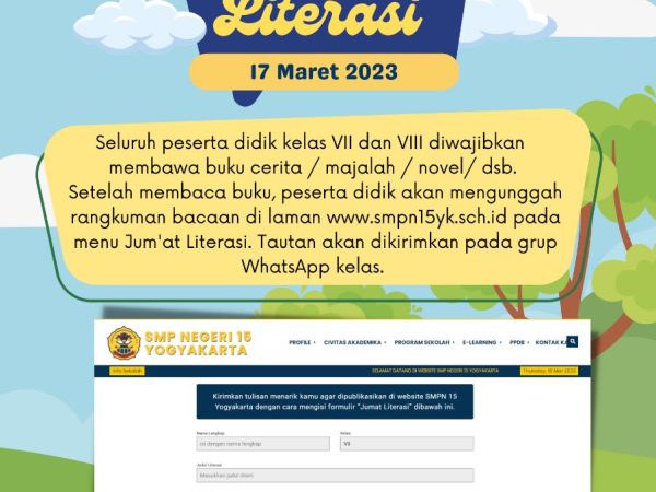 Semester genap Tahun Ajaran 2025–2026 diawali dengan langkah bermakna melalui Jumat Karakter Mabelta. Launching Perpustakaan SENYUM menjadi ruang awal untuk menumbuhkan budaya literasi, karakter, dan semangat belajar bersama di SMP Negeri 15 Yogyakarta.