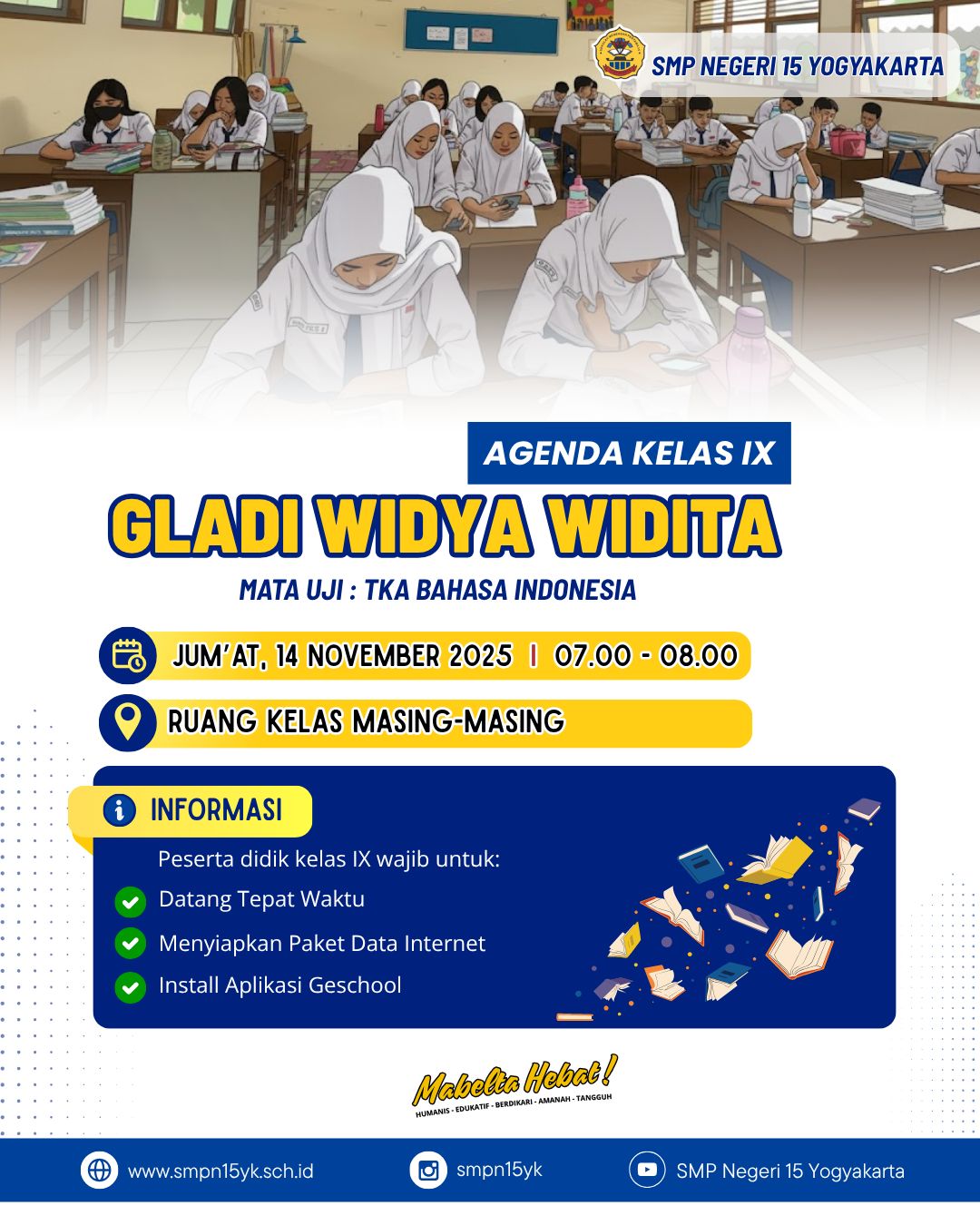 • Pesantren Ramadan & Doa Bersama Kelas VII SMP Negeri 15 Yogyakarta akan dilaksanakan pada Senin, 2 Maret 2026, mulai pukul 14.00 WIB.