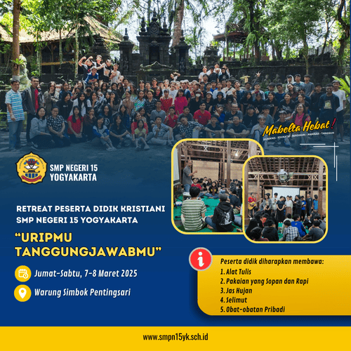 • Pesantren Ramadan & Doa Bersama Kelas VII SMP Negeri 15 Yogyakarta akan dilaksanakan pada Senin, 2 Maret 2026, mulai pukul 14.00 WIB.