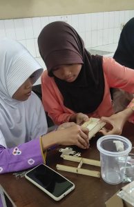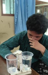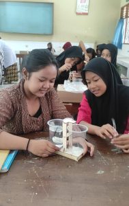 Setelah kurang lebih 30 menit peserta didik melakukan eksperimen, kegiatan dilanjutkan dengan menyimak penjelasan mengenai tekanan hidrostatis dan penerapannya dalam kehidupan sehari-hari. Tidak lupa peserta didik juga mengerjakan lembar kerja layaknya mengikuti kegiatan pembelajaran mata pelajaran IPA. Lembar kerja tersebut tentunya mengenai water dispenser yang telah mereka pelajari.