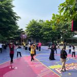 Dilanjutkan pukul 08.00 WIB, suasana menjadi lebih santai dan ceria melalui senam sehat aerobik bersama instruktur Bu Desi Andini, S.Pd., M.Or. Semua peserta mengenakan dresscode bebas dan terlihat antusias mengikuti setiap gerakan senam dengan penuh semangat.