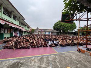 Seluruh murid kelas VII dan VIII berkumpul di lapangan untuk mengikuti Sosialisasi Adiwiyata dengan tema "Pentingnya Menjaga Lingkungan Sekolah." Kegiatan ini bertujuan menumbuhkan kepedulian murid terhadap lingkungan melalui pemahaman dasar tentang kesehatan lingkungan.