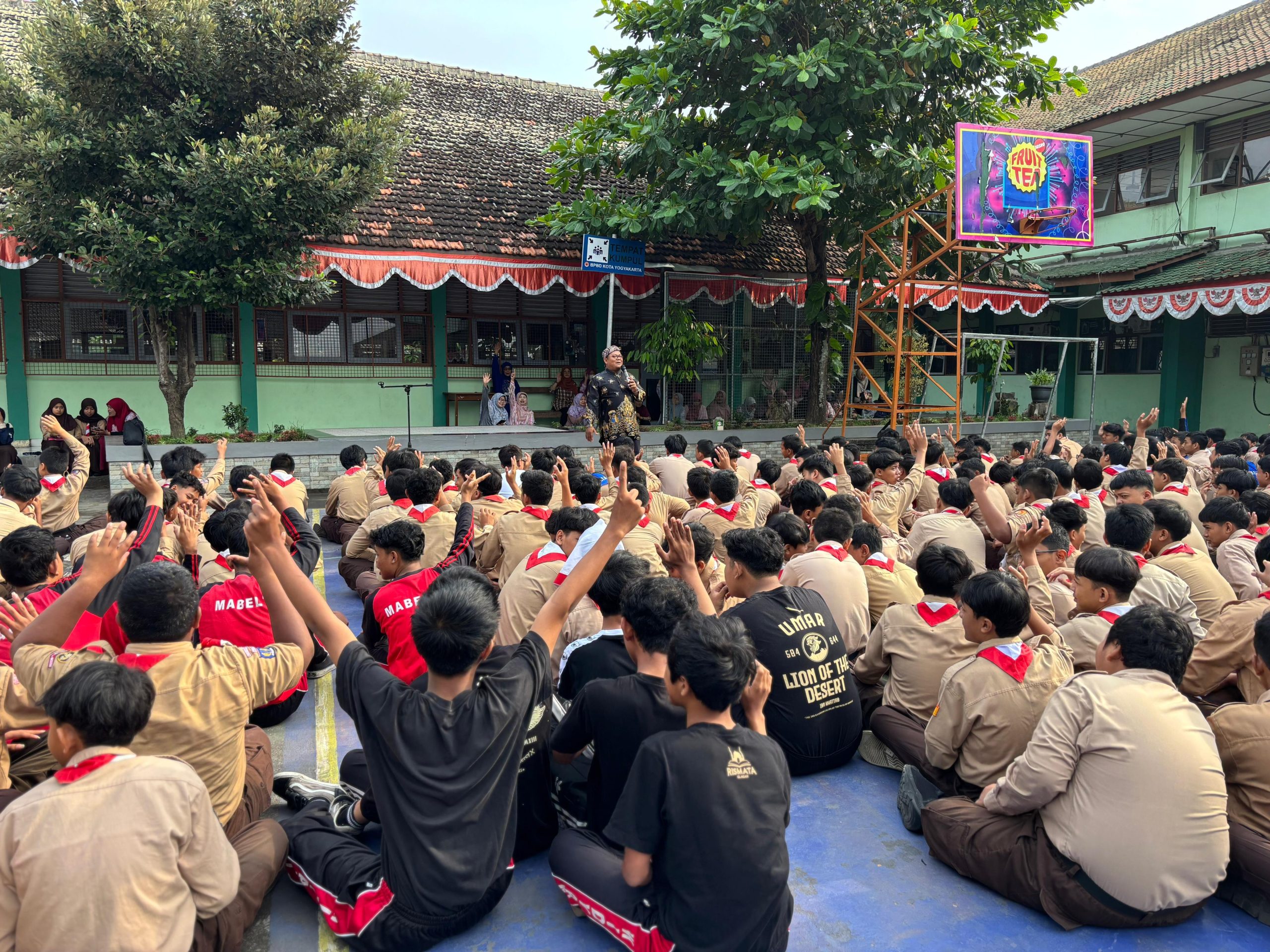 Seluruh murid kelas VII dan VIII berkumpul di lapangan untuk mengikuti Sosialisasi Adiwiyata dengan tema "Pentingnya Menjaga Lingkungan Sekolah." Kegiatan ini bertujuan menumbuhkan kepedulian murid terhadap lingkungan melalui pemahaman dasar tentang kesehatan lingkungan.