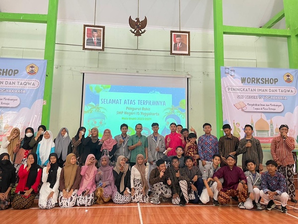 (Kamis, 2 November 2023) SMPN 15 Yogyakarta menyelenggarakan Workshop Peningkatan Iman dan Taqwa untuk anggota dan pengurus Rohis (Kerohanian Siswa) masa kepengurusan tahun 2023-2024. Workshop ini diselenggarakan di Grha Mabelta, diikuti oleh anggota dan pengurus Rohis berjumlah 100 siswa.